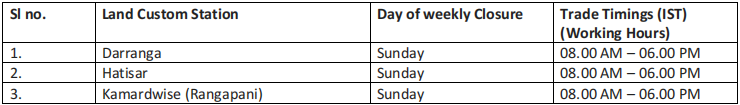 Cross border to Bhutan in West Bengal and Assam: Jaigaon Indian side in the state of West Bengal andPhuntsoling is Bhutan side. Phuntsoling is the gateway to Bhutan in the South West of Bhutan, is the only landborder which grants access to the country 90% of trade in Bhutan is with Indian and conducted through thistown. Phuntsoling being the border town has an Indian character and taste even through it tries to maintainBhutanese way of living near about 400 truck are being export every day at Jaigaon and Pakasa. Currently near75% of total trade between India and Bhutan takes place through Jaigaon LCS in Alipurduar. In Assam one is1) Darranga: (Baksa District of BTAD) is Rangia- Tamulpur motorable road from Darranga to Samdrup-Thankar(in Bhutan) in the District of Baksa of Assam and trading is going on one border trade under constructed.Second one is 2) Hatisar :(Chirang District of BTAD) is motorable road from Samthiabari to gaylephug(Bhutan)Via Runikhata and Deosiri in the District of Chirang of Assam and trading is going on proposed to setup oneborder trade centre at Hatisar LCS.